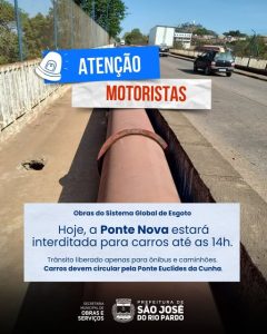 Na manhã da última segunda-feira (6), a Ponte Ademar de Barros (Ponte Nova) estará interditada