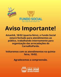 Hoje, 18/02 (quarta-feira), o Fundo Social estará fechado para atendimentos ao público, trabalhando internamente para
