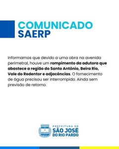 Informamos que devido a uma obra na avenida perimetral, houve um rompimento da adutora que
