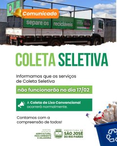 Atenção! Apenas um dos serviços terá alteração na seguinte data: A Coleta Seletiva não será