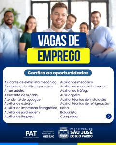 O PAT de São José do Rio Pardo está com novas oportunidades de emprego em diversas áreas. Confira as vagas