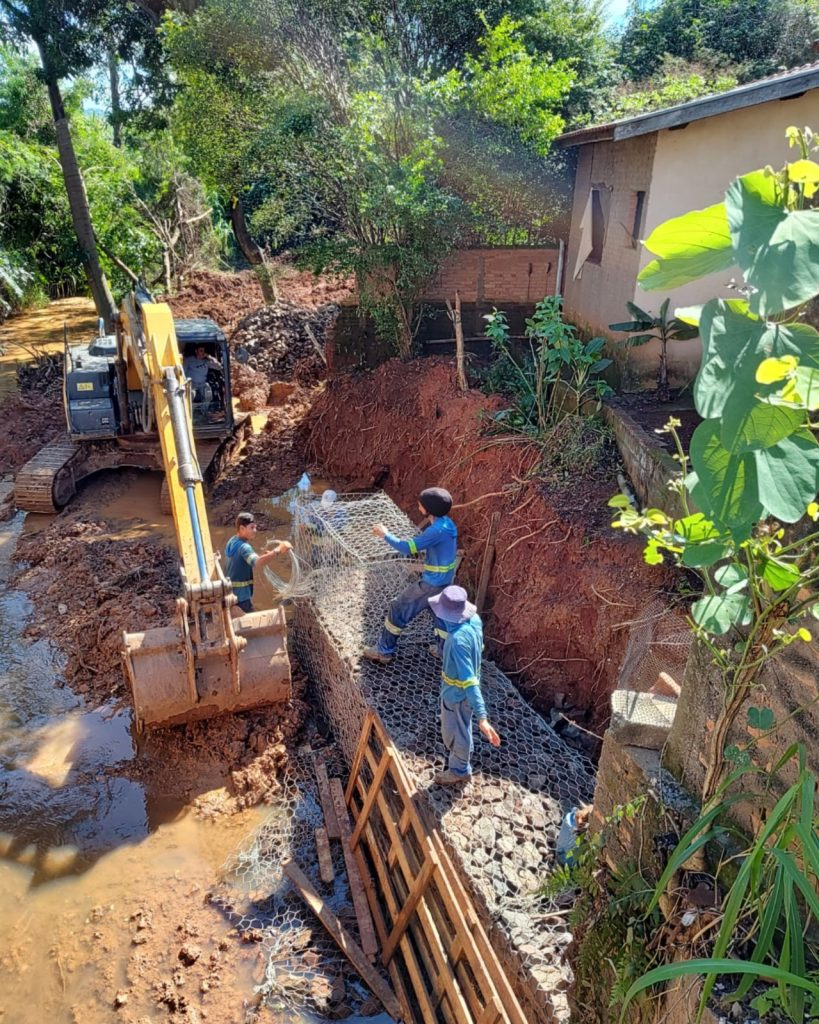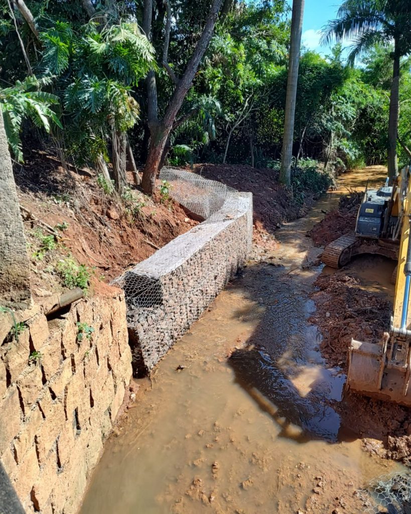 A execução segue com a construção de muros de contenção em gabiões nas ruas Ananias Barbosa e Expedicionários, com próxima etapa na rua Siqueira Campos.