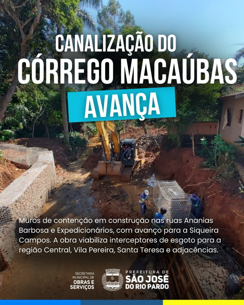 A execução segue com a construção de muros de contenção em gabiões nas ruas Ananias Barbosa e Expedicionários, com próxima etapa na rua Siqueira Campos.
