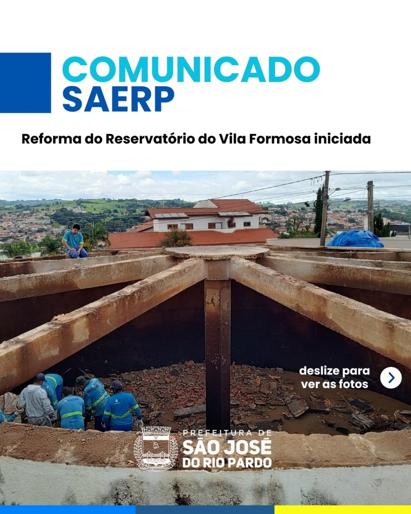 A Saerp realizou na última quinta-feira (15), a primeira etapa da reforma do reservatório da região da Vila Formosa localizada no bairro Jardim Bela Vista.