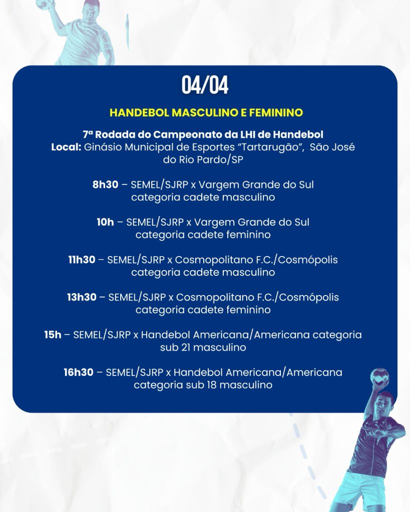 15h00 – Sub-21 masc.: SEMEL/SJRP x Handebol Americana
