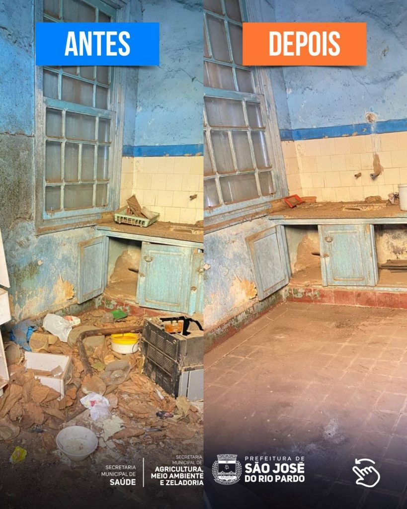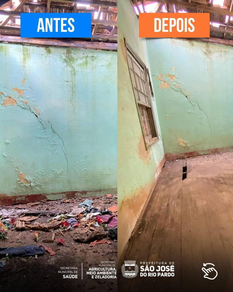 No Centro da cidade, a Prefeitura de São José do Rio Pardo realizou mais uma limpeza compulsória em imóvel abandonado que oferecia risco à saúde pública.