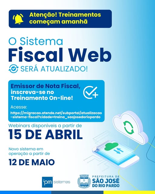 Começam amanhã, 15 de abril, os treinamentos online sobre a atualização do sistema de Nota Fiscal de Serviços Eletrônica (NFS-e) da Prefeitura de São José do Rio Pardo.