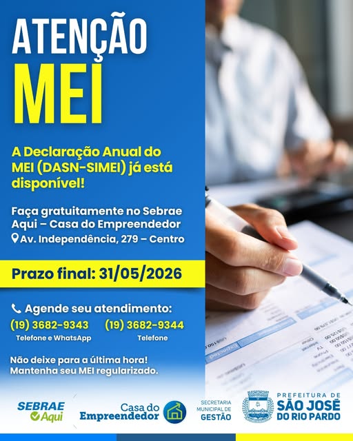 A Declaração Anual de Faturamento do MEI (DASN-SIMEI) já está disponível e deve ser feita até 31/05/2026. Não deixe para a última hora!
