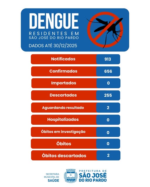A Prefeitura de São José do Rio Pardo divulga o boletim final da dengue em 2025, com dados atualizados até 30 de dezembro.