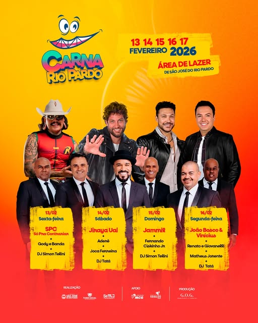 O maior carnaval da região vem aí com quatro dias de muita festa, música e alegria. Grandes nomes do samba, pagode, axé e sertanejo vão transformar o Carnariopardo em momentos inesquecíveis!