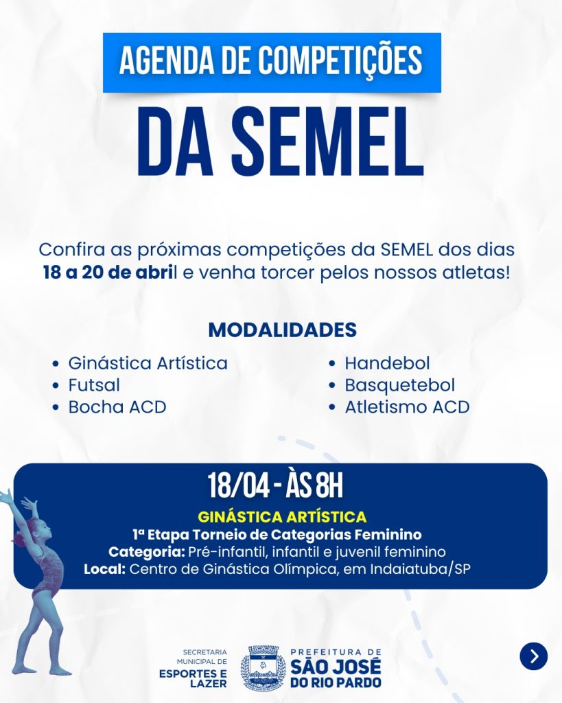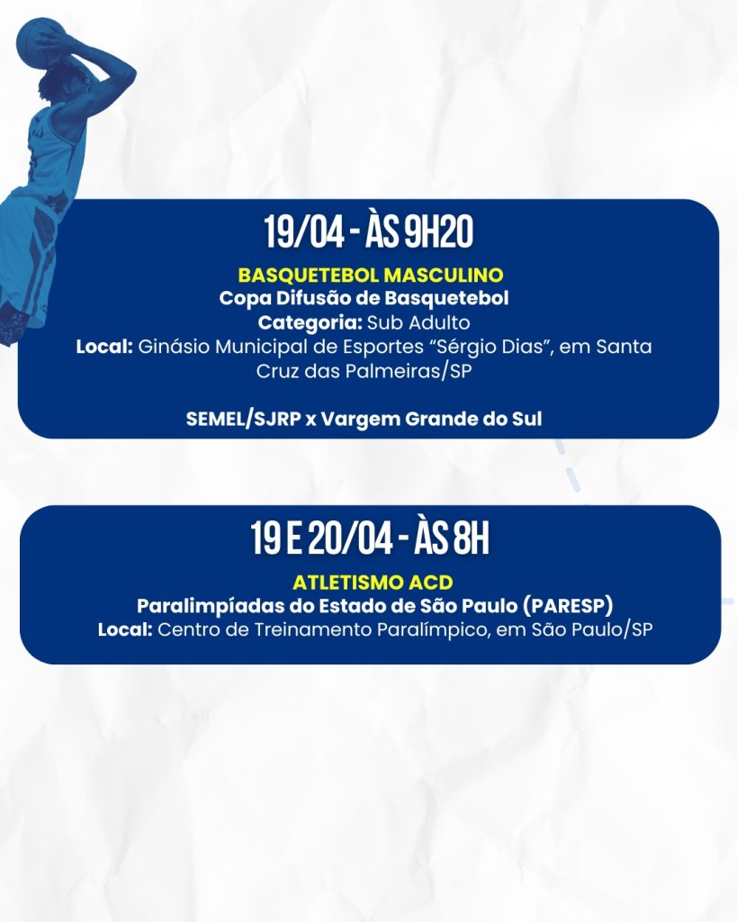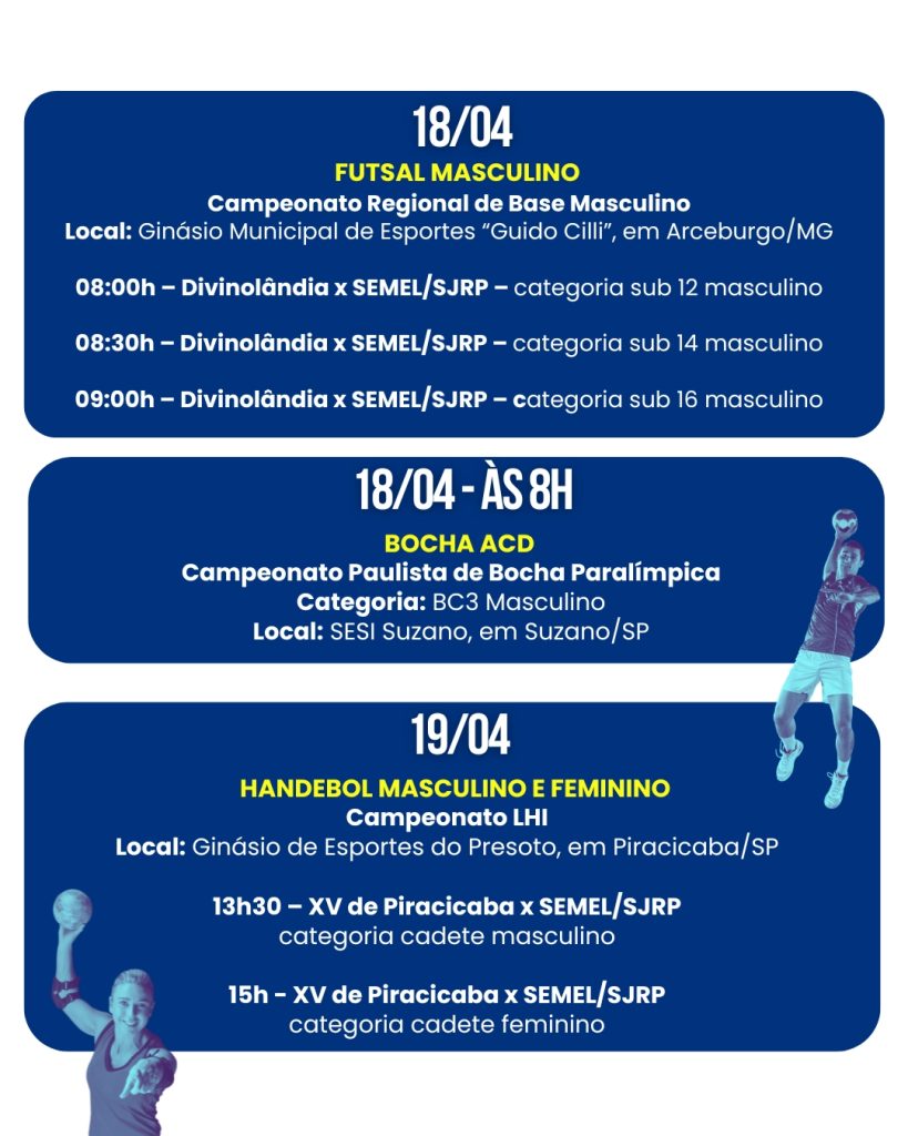 O fim de semana será de agenda cheia para os atletas de São José do Rio Pardo, com equipes em ação em diversas modalidades e cidades. Confira: