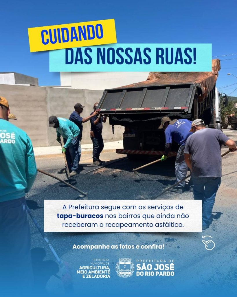 A Prefeitura de São José do Rio Pardo, por meio da Secretaria Municipal de Agricultura, Meio Ambiente e Zeladoria, retomou nesta semana os trabalhos de manutenção das vias urbanas, com a execução de serviços de tapa-buracos nos bairros que ainda não foram contemplados com o recapeamento asfáltico.