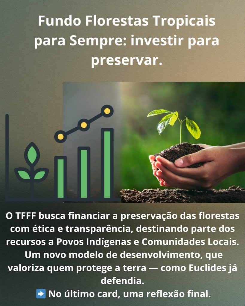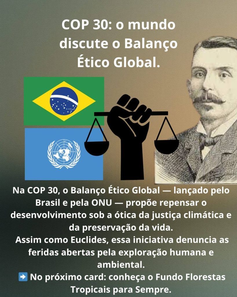 🌱 Hoje, a COP 30 retoma esse debate em escala global, com o Balanço Ético Global e o Fundo Florestas Tropicais para Sempre, que propõem um novo pacto ético e sustentável para o planeta.