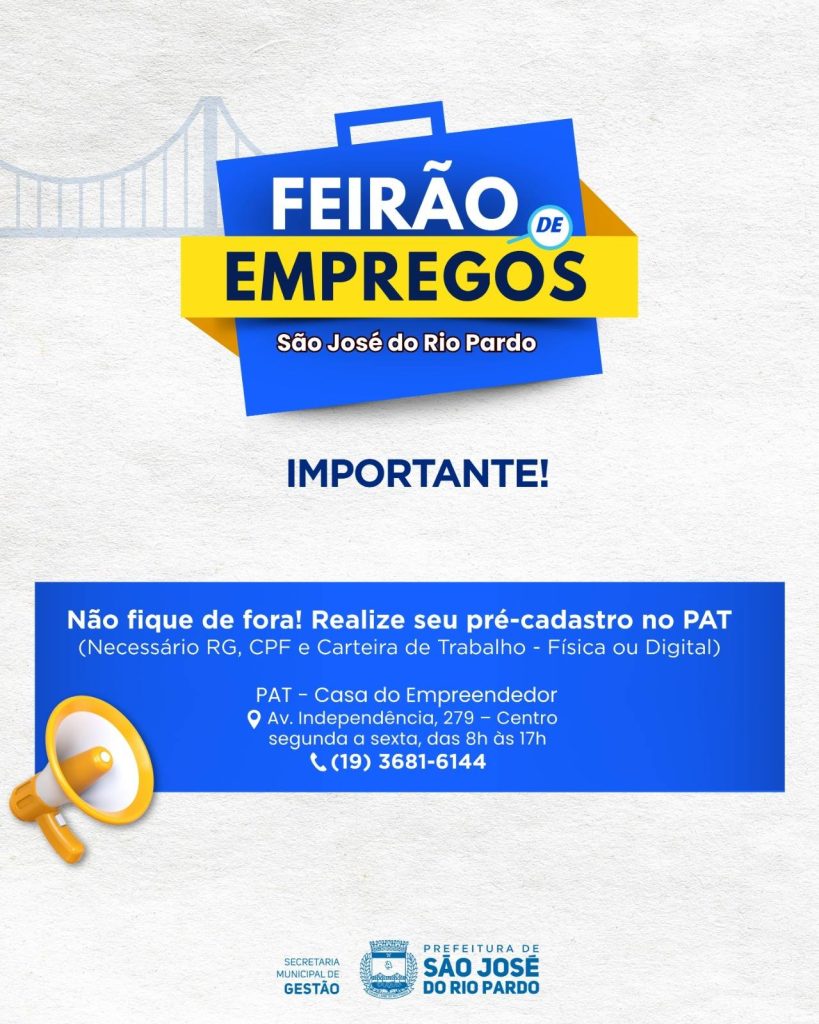 ⚠️ Para garantir sua participação, é fundamental fazer o pré-cadastro antecipado no PAT, localizado na Casa do Empreendedor.