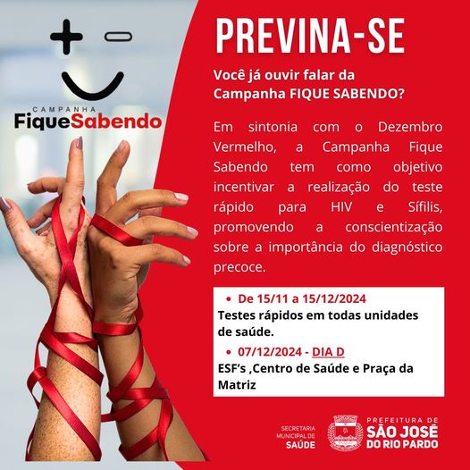A Campanha Fique Sabendo está de volta, e este ano, vem com tudo! Em sintonia com o Dezembro Vermelho, ação tem o objetivo de alertar e conscientizar a população sobre a importância da testagem para HIV e sífilis.