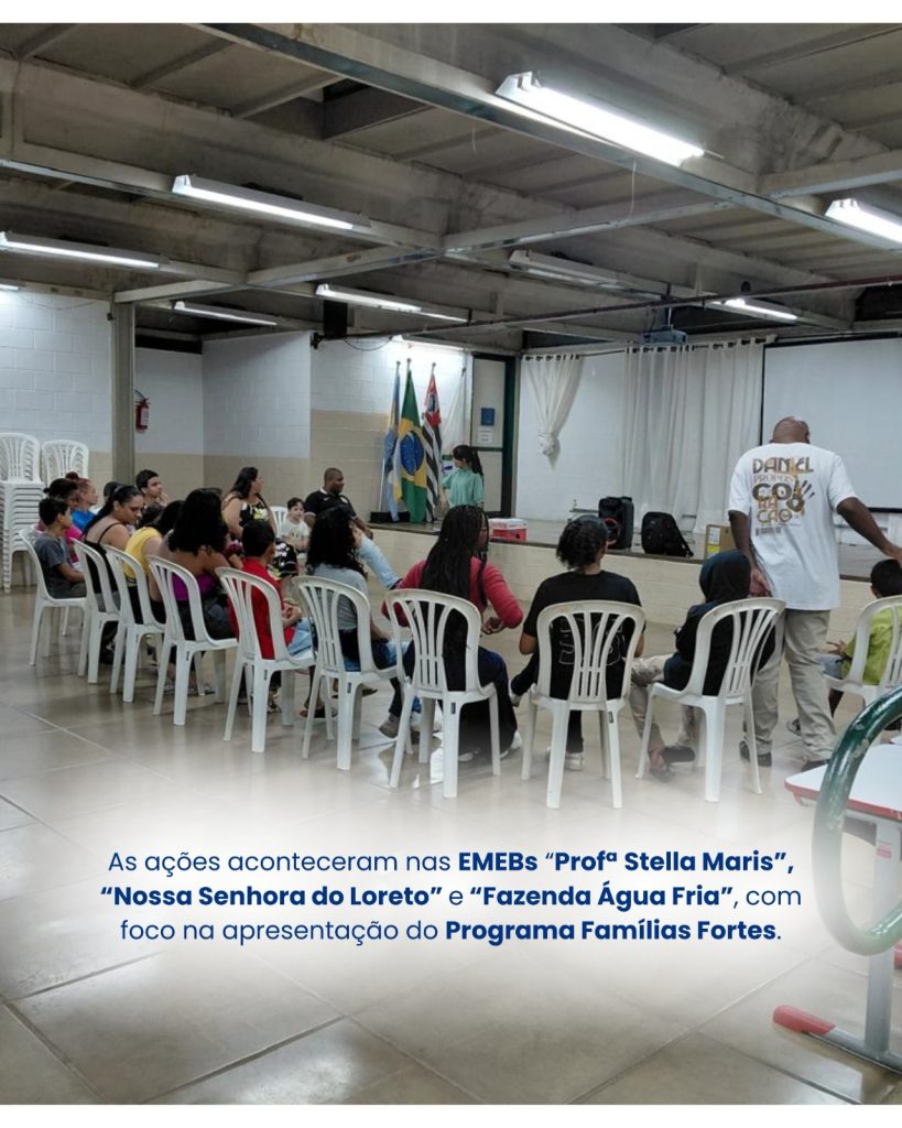 Após reunião com a Secretaria de Educação, a equipe esteve nas escolas EMEB Stella Maris, EMEB Prof.ª Maria Apparecida do Loreto e EMEB Água Fria, apresentando o programa Famílias Fortes.