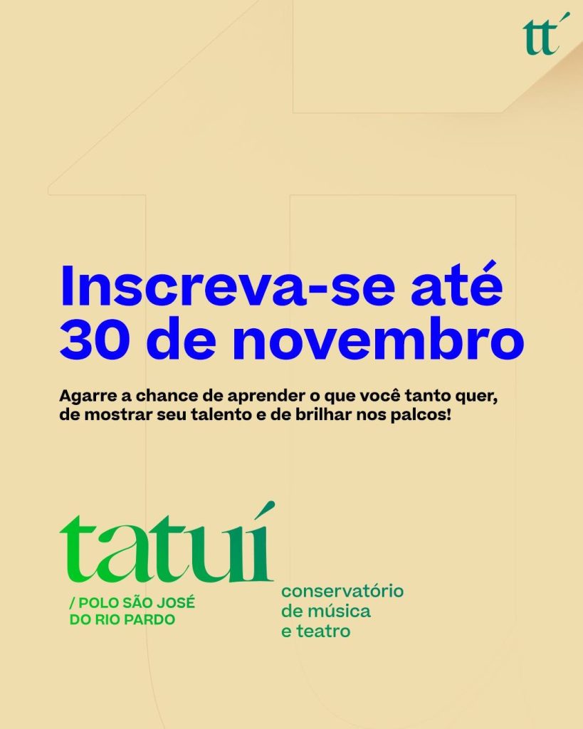 O Conservatório de Tatuí – equipamento da @culturasp – está com inscrições abertas para o Processo Seletivo de Estudantes 2026 no Polo São José do Rio Pardo.