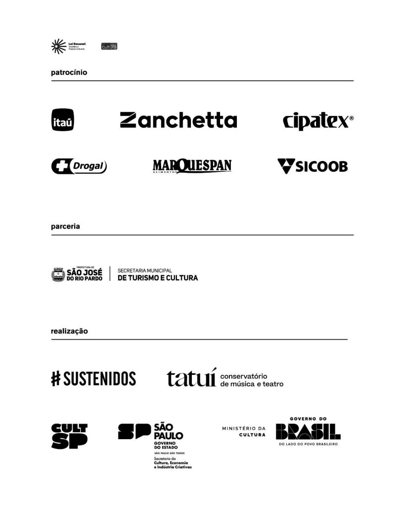 O Conservatório de Tatuí agradece aos patrocinadores que apoiam as nossas atividades via Lei de Incentivo do Ministério da Cultura: Itaú, Zanchetta, Cipatex, Drogal, Marquespan, Sicoob.