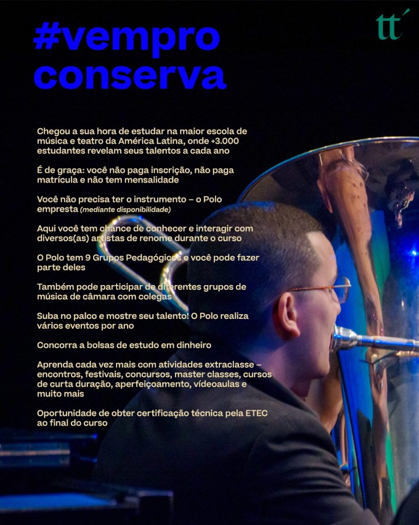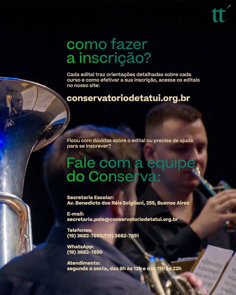 Estão abertas as inscrições para o 2º Processo Seletivo de Estudantes 2026 do Conservatório de Tatuí, considerada a maior escola de música e teatro da América Latina.