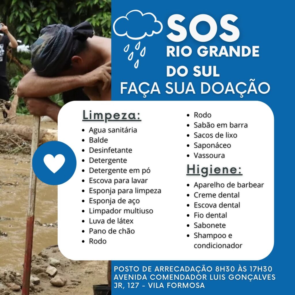 Neste momento, milhares de nossos irmãos estão enfrentando uma das maiores provações de suas vidas devido às enchentes que assolaram o Rio Grande do Sul. São famílias desalojadas, corações dilacerados pela perda de entes queridos, animais e bens. Eles precisam da nossa ajuda, do nosso apoio, do nosso amor.