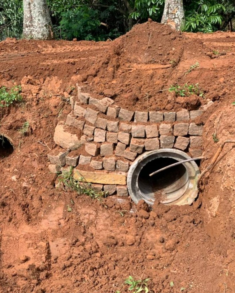 Na estrada rural da região do Barreirinho, em São José do Rio Pardo (SP), a equipe realizou manutenção contribuindo para melhorias na captação das águas pluviais.