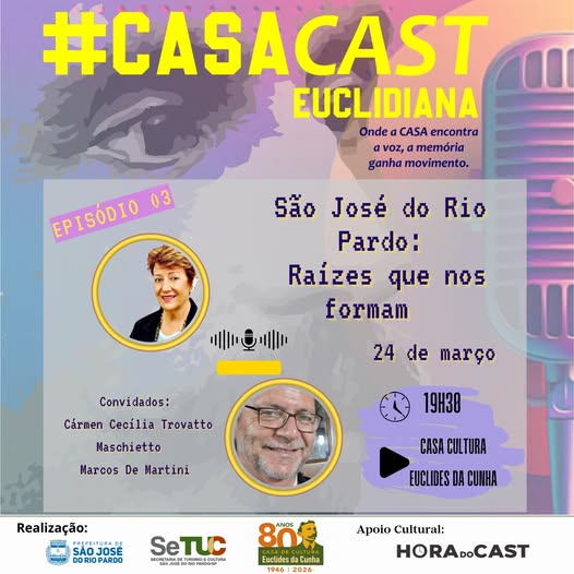 A Prefeitura Municipal de São José do Rio Pardo, por meio da Secretaria Municipal de Turismo e Cultura e da Casa de Cultura Euclides da Cunha, convida você para acompanhar o Episódio 03 do #CasaCast Euclidiana.