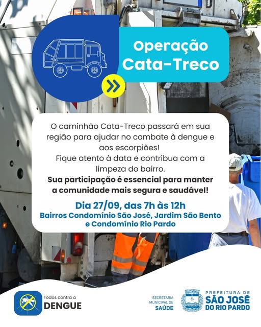 A próxima etapa será neste sábado, 27/09, nos bairros Condomínio São José, Jardim São Bento e Condomínio Rio Pardo, das 7h às 12h.