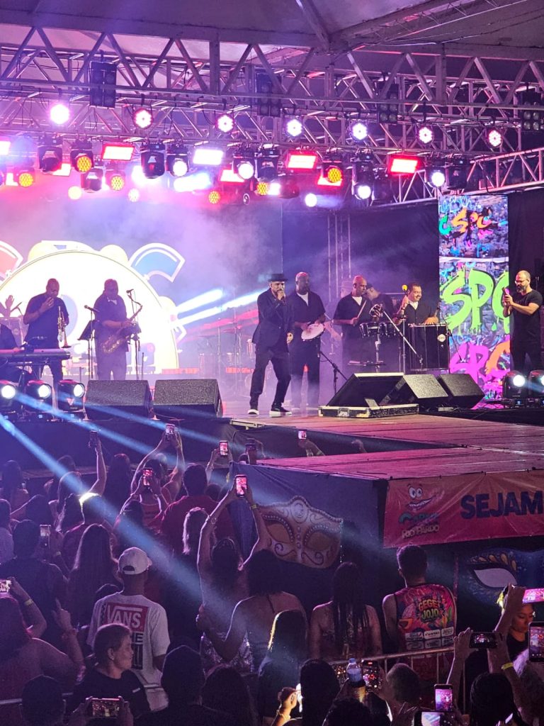 O público vibrou com a grande atração da noite, o grupo Só Pra Contrariar, que reuniu foliões e colocou todo mundo para cantar e dançar com sucessos marcantes do pagode e hits que atravessam gerações.