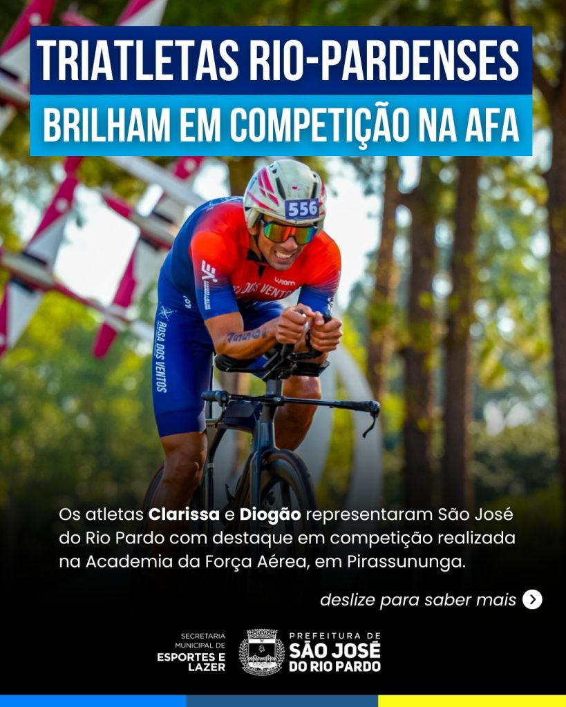 No último domingo (12), os triatletas rio-pardenses Clarissa e Diogão competiram na AFA, em Pirassununga, e conquistaram excelentes resultados