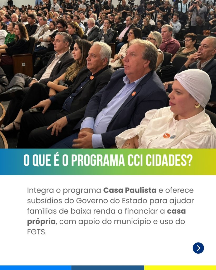 A plateia acompanhando cerimônia sobre o programa CCI Cidades.