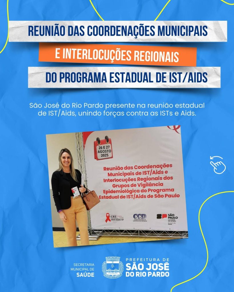 A Secretaria Municipal de Saúde, por meio da Vigilância em Saúde, participou da Reunião das Coordenações Municipais de IST/Aids e das Interlocuções Regionais dos Grupos de Vigilância Epidemiológica do Programa Estadual de IST/Aids de São Paulo, nos dias 26 e 27 de agosto.