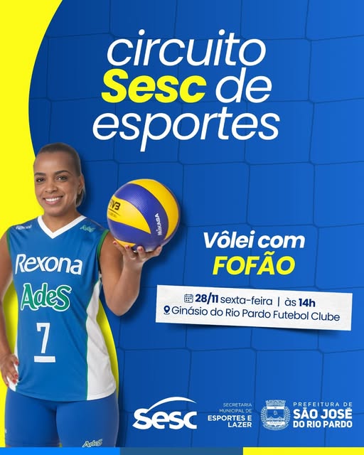 A ex-jogadora e campeã pela Seleção Brasileira de Vôlei, Fofão, estará em São José do Rio Pardo para uma vivência esportiva especial, levando técnica, experiência e muita inspiração a atletas e apaixonados pelo esporte.