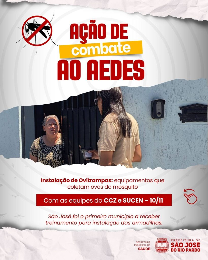 No último dia 10/11, a Prefeitura de São José, por meio da Secretaria da Saúde e da Vigilância em Saúde, realizou a instalação de ovitrampas com as equipes do Centro de Controle de Zoonoses (CCZ) e da SUCEN.
