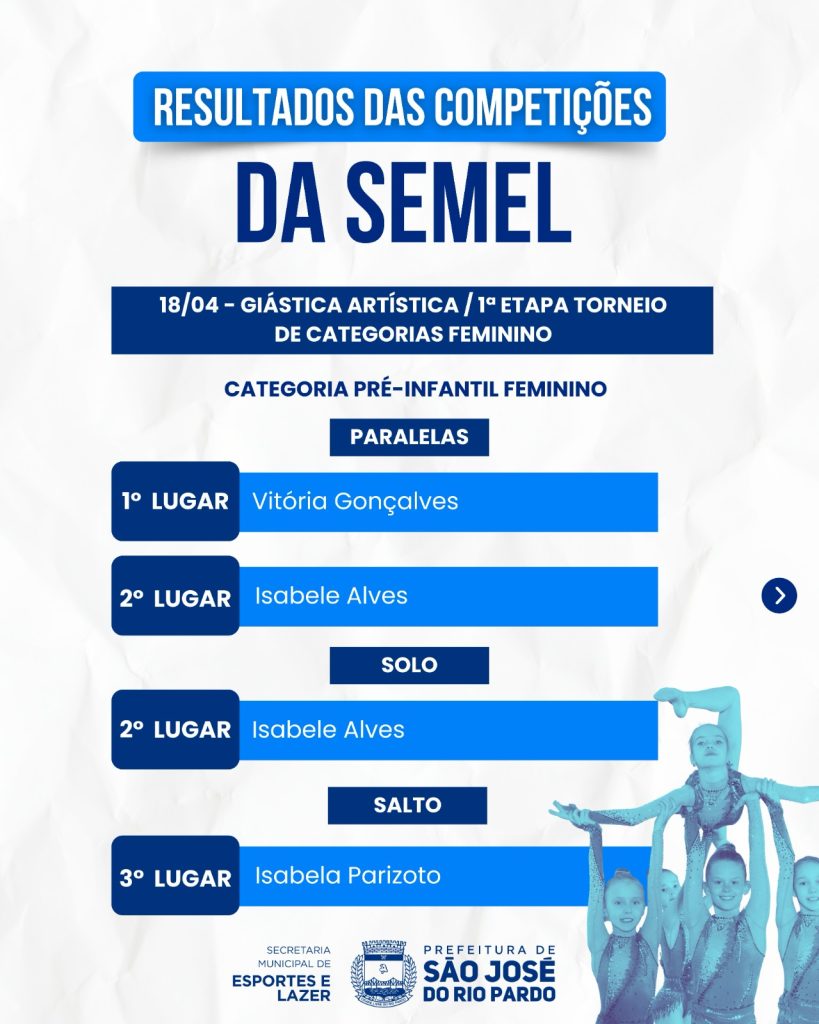 Nos dias 18 e 19 de abril, nossas equipes representaram São José do Rio Pardo em competições de ginástica artística, futsal e handebol, em diferentes cidades da região.