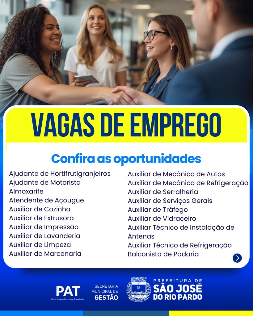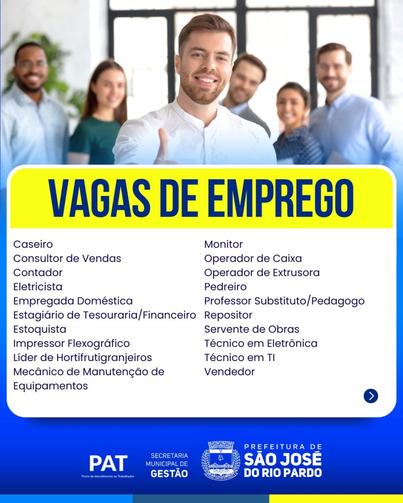 O PAT de São José do Rio Pardo está com novas oportunidades em diversas áreas.