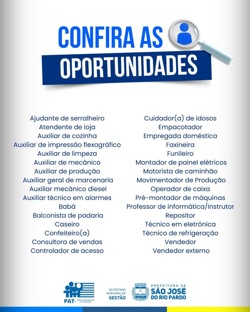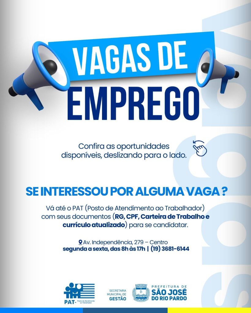 O PAT de São José do Rio Pardo está com novas oportunidades abertas! Se você está em busca de trabalho, essa pode ser a sua chance.