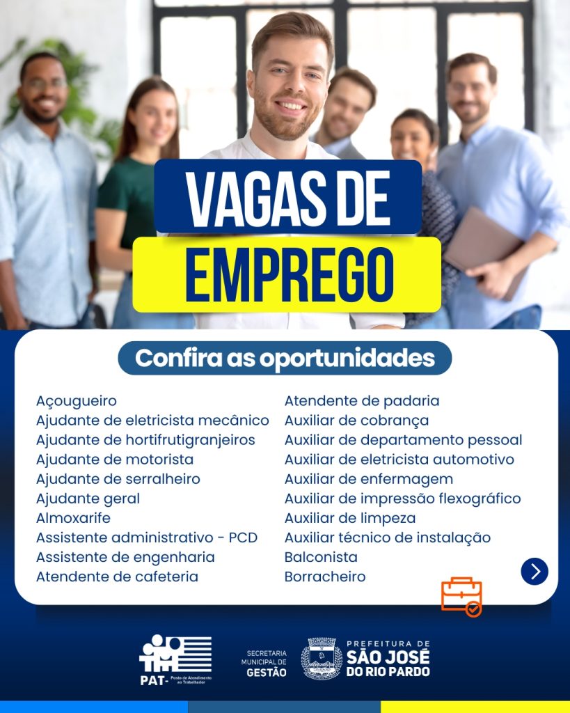 O PAT de São José do Rio Pardo inicia o ano com novas oportunidades de trabalho em diversas áreas.
